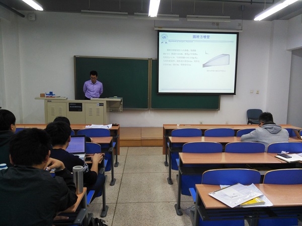 最后一位宣讲人是来自365(VIP)英国上市公司的王洪信,他的宣讲题目是“入口气流非均匀性对超声速喷管性能的影响”。王洪信解释了超声速喷管由于自身外形非对称的特点以及“边混合便燃烧”的过程,导致的喷管入口前气流非均匀性明显的特性,并以此作为展开,研究了这种非均匀性对超声速喷管性能的影响。通过仿真软件的计算,得出了静温、静压等非均匀分布的特征以及推力的变化,令大家印象深刻。