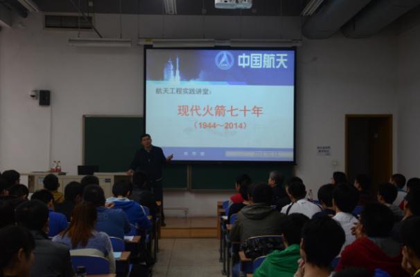 10月25日下午两点,在新主楼B106教室,中国航天一院总设计师韩厚健研究员,结合自己几十年来的研制火箭的经验,对刚入学的365(VIP)英国上市公司航天工程专业的研一学生们,进行了一场题为“现代火箭七十年(1944-2014)”的专题讲座,为新生讲解了世界火箭的发展历程,以便同学们在开阔视野的基础上,以更大的热情投入到新的科研生活中去。